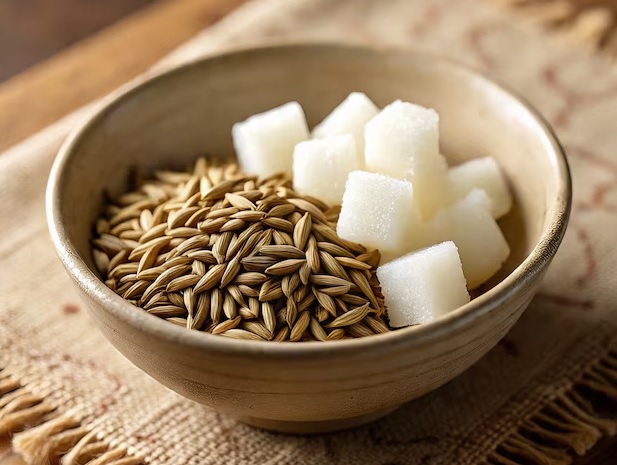 यह पाचक रसों और एंजाइमों के उत्पादन में मदद करता है। परिणामस्वरूप, भोजन आसानी से पच जाता है। वहीं दूसरी ओर, मिश्री पेट को ठंडक पहुँचाती है। इसलिए, एसिडिटी या जलन की समस्या कम होती है।